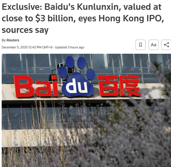 路透社今日援引知情人士独家报道称,百度(09888.HK)旗下AI芯片公司昆仑芯正计划赴港上市。