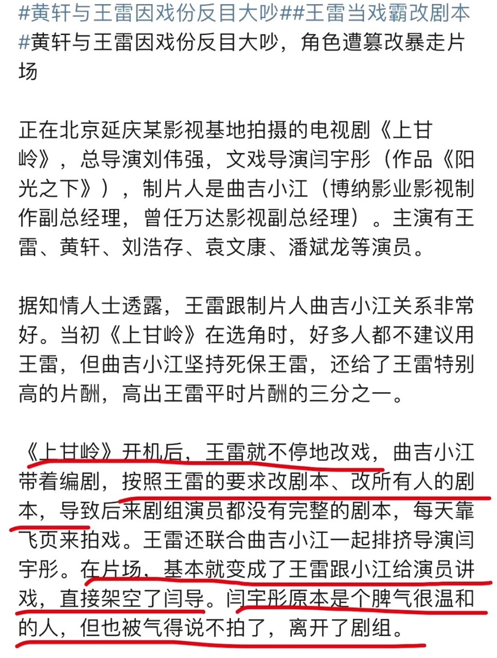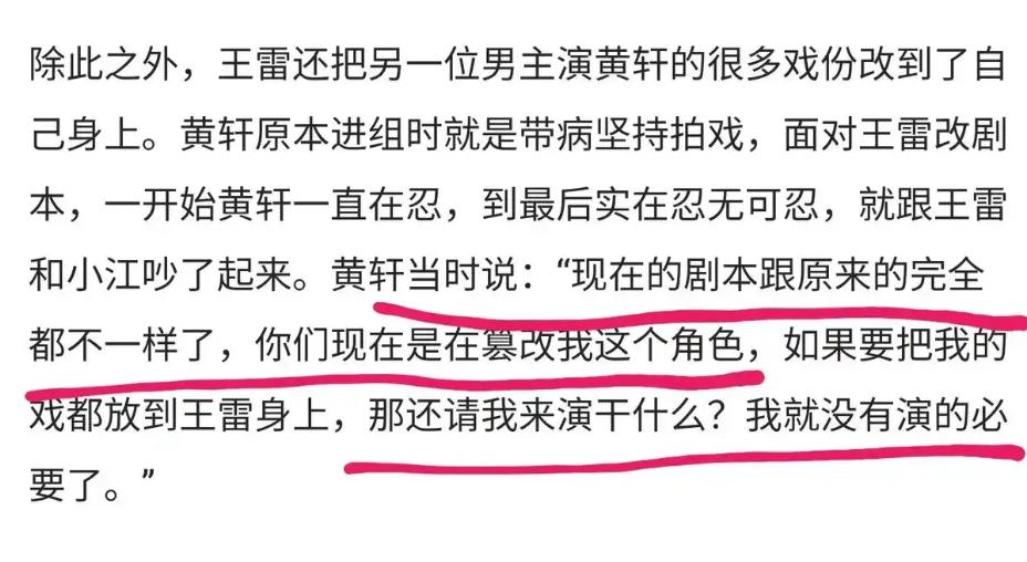 曾有传闻说王雷非常喜欢改戏改剧本,到最后,甚至其他人的戏份也受到影响了。